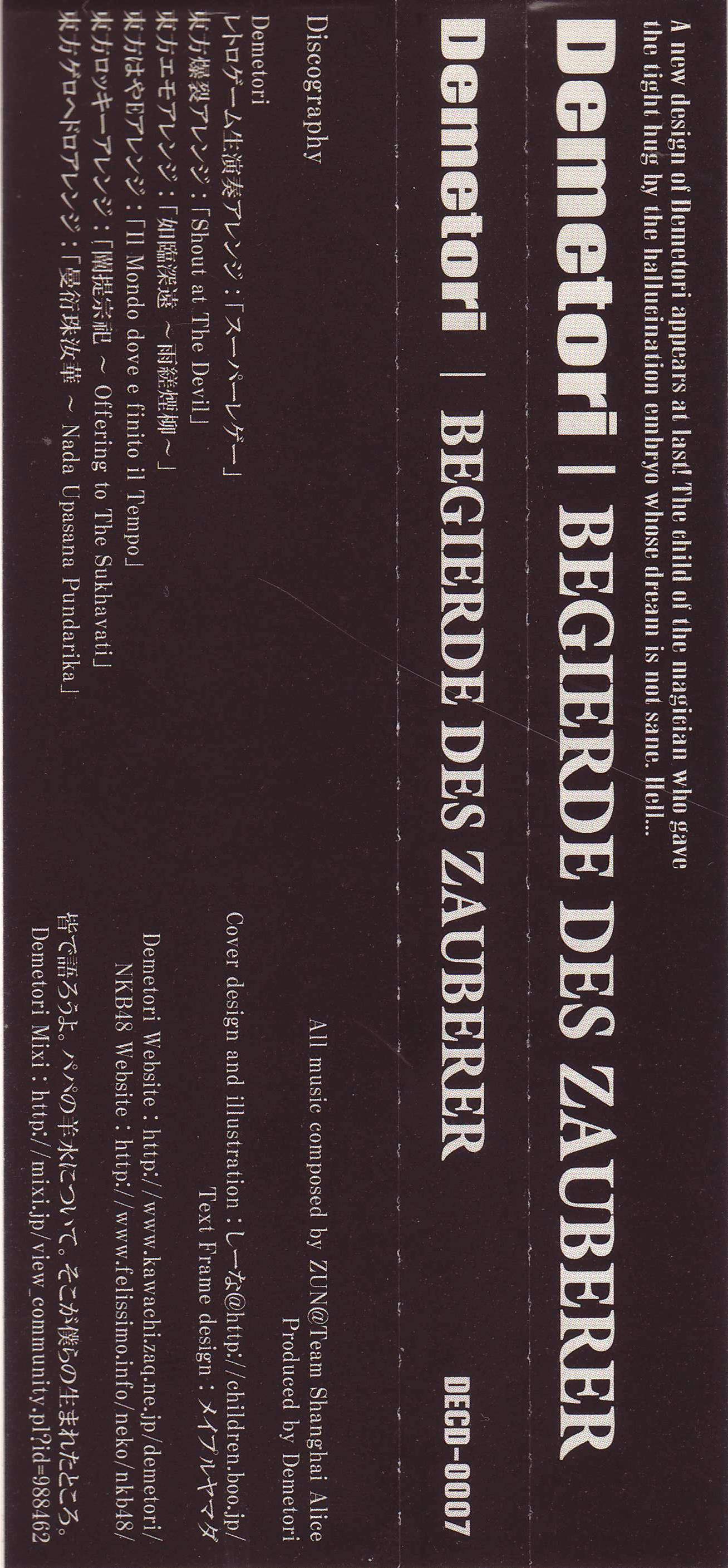 | - | (01) [Demetori] 欲深き霊魂 ~ Introduction.flac | 18137770 | 2026-03-09 04:41:02 |